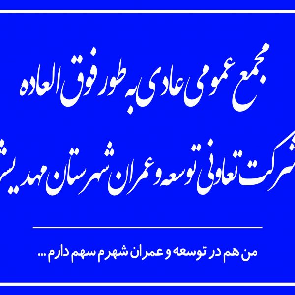 مجمع عمومی عادی بطور فوق العاده شرکت تعاونی توسعه و عمران شهرستان مهدیشهر برگزار شدMORAD HAMEDIAN2022-11-13مجمع عمومی عادی بطور فوق العاده شرکت تعاونی توسعه و ... ادامه مطلب